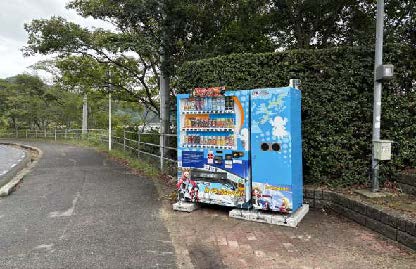 ※多々羅大橋アプローチ道入口のバス待合所のコラボ自販機は契約満了により設置終了となりました。