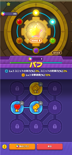 ▲「ポテンシャルの玉」を集めることで体力や攻撃速度などにバフを掛けることができる。