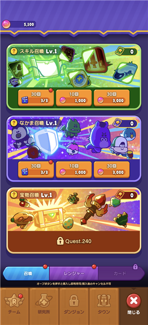 ▲「スキル」や「なかま」、「宝物」はオーブを消費する召喚で手に入れることができる。編成には「おまかせ」機能が搭載されているので、あまりゲームに慣れていない方でも安心して遊ぶことができる。