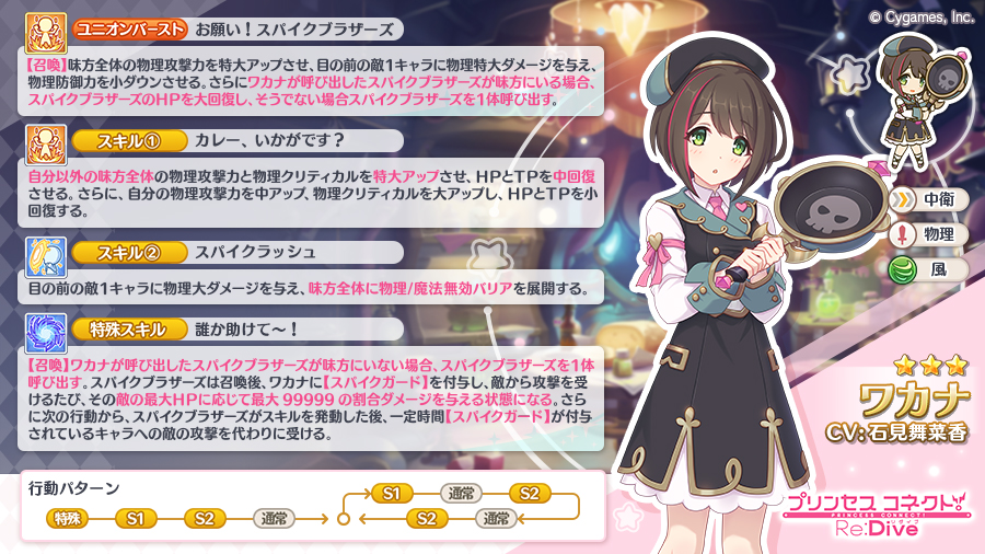 新キャラ「ワカナ」のスキルは下のとおり。詳しくはゲーム内で確認しよう。