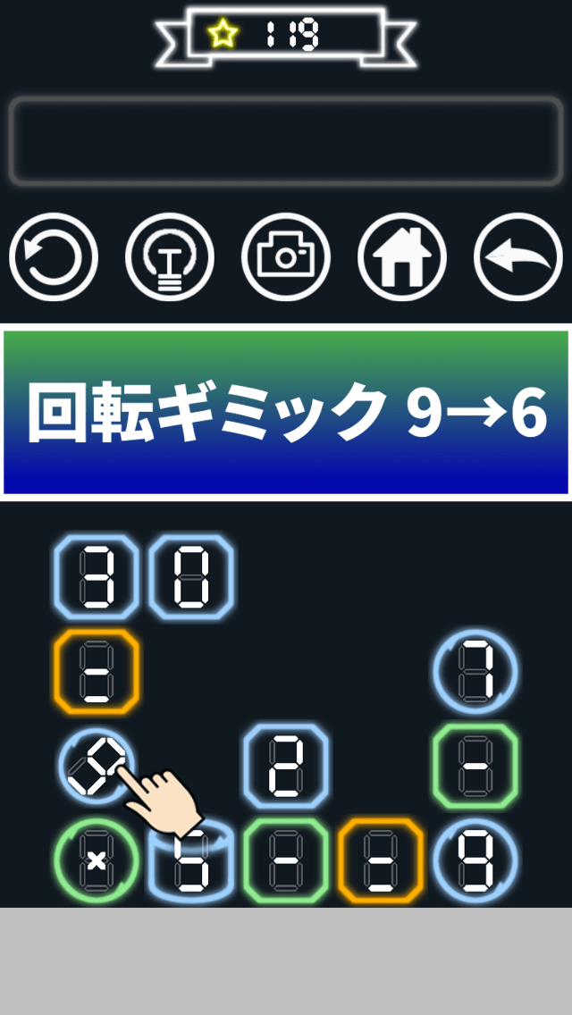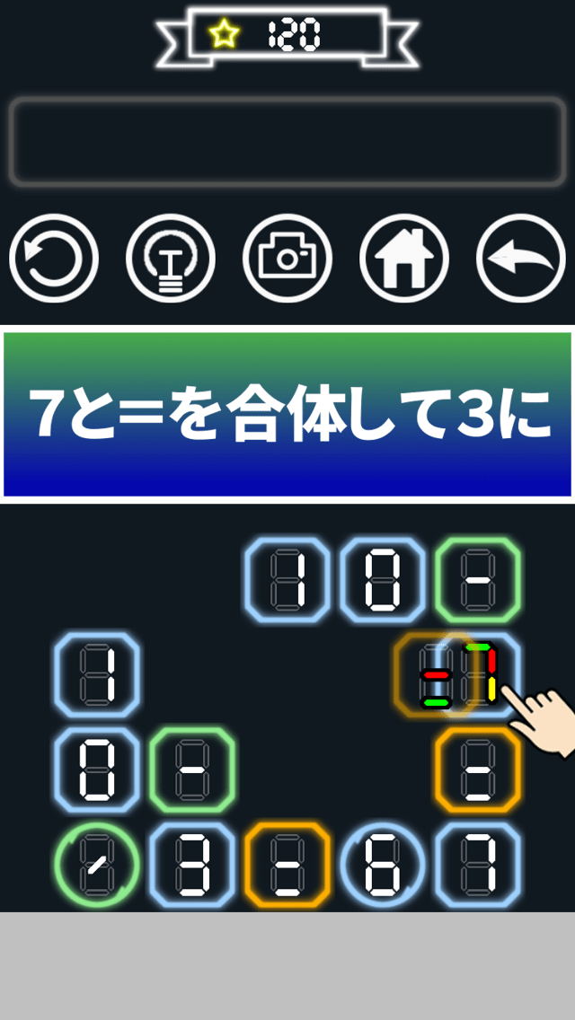 数字と演算子をなぞって数式をつくる。全部消すとステージクリアー。
