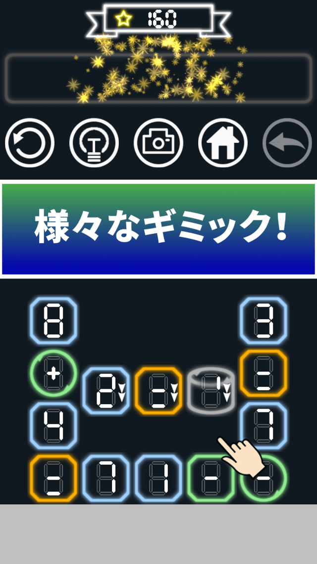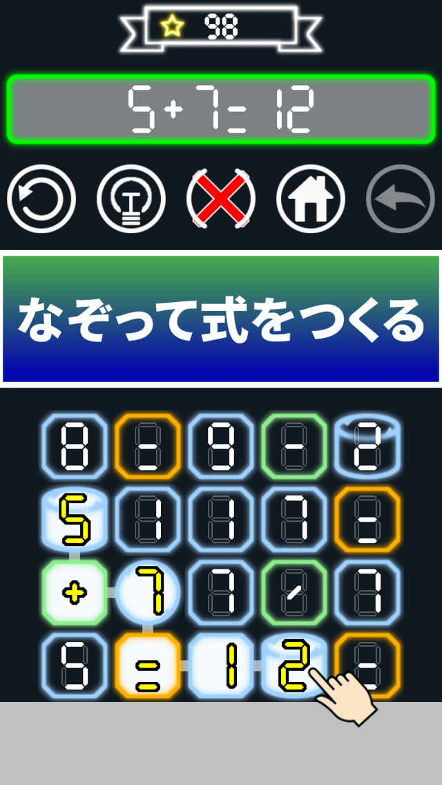 数字と演算子をなぞって数式をつくるパズルゲーム。さわってみれば直ぐに遊べるシンプルなルールになっている。