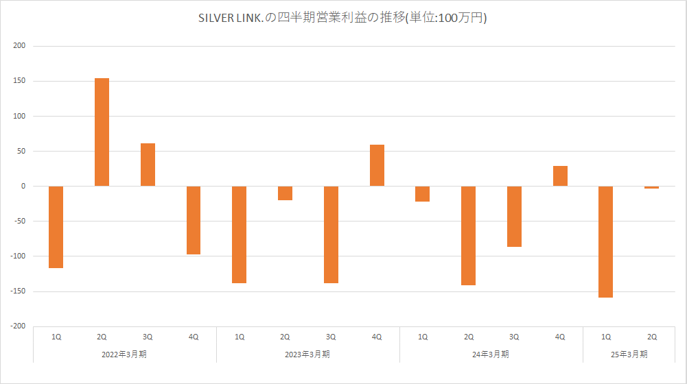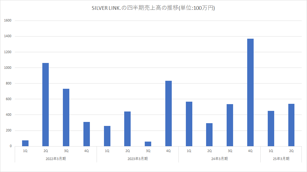 SILVER LINK.の2025年3月期 第2四半期(24年7~9月)の決算は、売上高5億4200万円(前年同期比84.4%増)、営業損失300万円(前年同期は1億4100万円の損失計上)と大幅増収・赤字幅縮小となった。