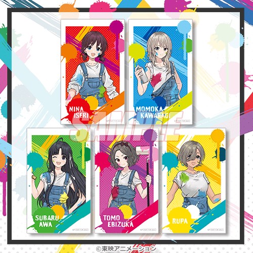 賞品は今回のためにペインターをイメージした東映アニメーション<4816>描き下ろしの「井芹 仁菜」「河原木 桃香」「安和 すばる」「海老塚 智」「ルパ」 の特大タペストリーや、アクリルスタンドのほか、アニメの作中を振り返られるようなアクリルキーホルダー、缶バッジなど、オリジナルグッズを多数展開する。【10連セット】を購入すると、新規東映アニメーション描き下ろしイラストを使用した「ミニブロマイド」を1枚プレゼントする。