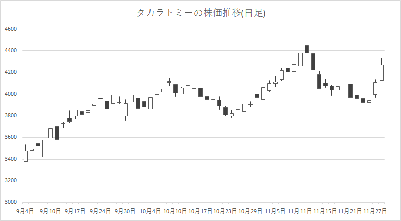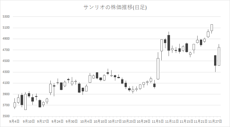 個別銘柄では、サンリオ<8136>やタカラトミー<7867>、モブキャストホールディングス<3664>、東宝<9602>が買われた一方、GENDA<9166>、東京通信<7359>、シリコンスタジオ<3907>、円谷フィールズホールディングス<2767>が売られた。
