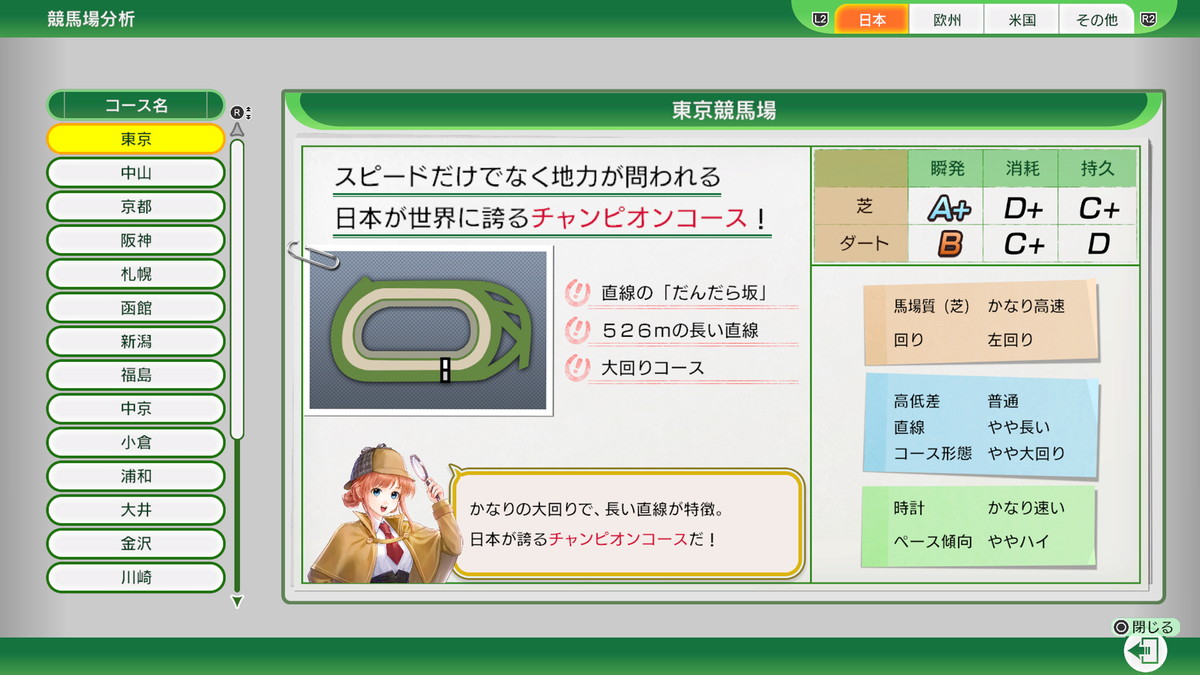 欧州特有のスタミナが問われる「持久戦」、日本で多く見られる末脚勝負の「瞬発戦」など、レース展開への適応力を競走馬の新パラメータとして追加。馬の「強さ」に多様な個性が生まれる。レースの舞台となる日本・世界の競馬場のデータも詳細化。高低差、直線の長短などさまざまな特徴がデータ化され、愛馬の能力や個性に合わせたレース選択がこれまで以上に重要になる。新パラメータを鍛える多様な育成法も追加し、世界で活躍する競走馬を育てる、より歯応えのあるプレイ感を実現する。