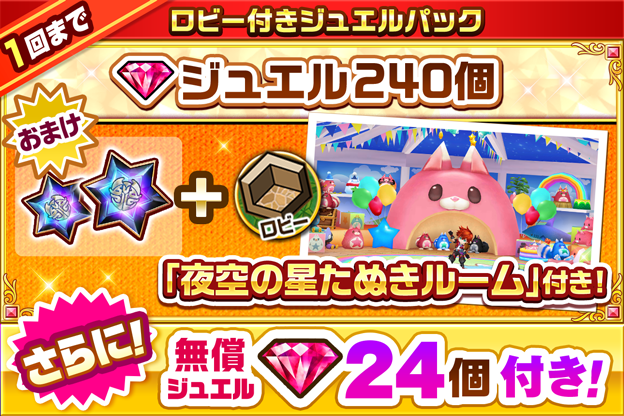 内容物:「ジュエル」240個、「無償ジュエル」24個、ロビー「夜空の星たぬきルーム」