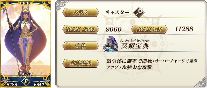 ※上記の「★4 (SR)ニトクリス(キャスター)」のセイントグラフは霊基再臨第2段階のものだ。