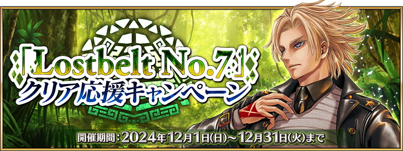 2025年開幕予定の「第 2 部 終章」を全マスター(プレイヤー)で迎えるために、メインクエスト第 2部のクリアを応援するキャンペーンを開催する。『「Lostbelt No.7」クリア応援キャンペーン』では、さまざまな施策で第 2 部 第 7 章「Lostbelt No.7 黄金樹海紀行 ナウイ・ミクトラン 惑星を統べるもの」のクリアを応援する。