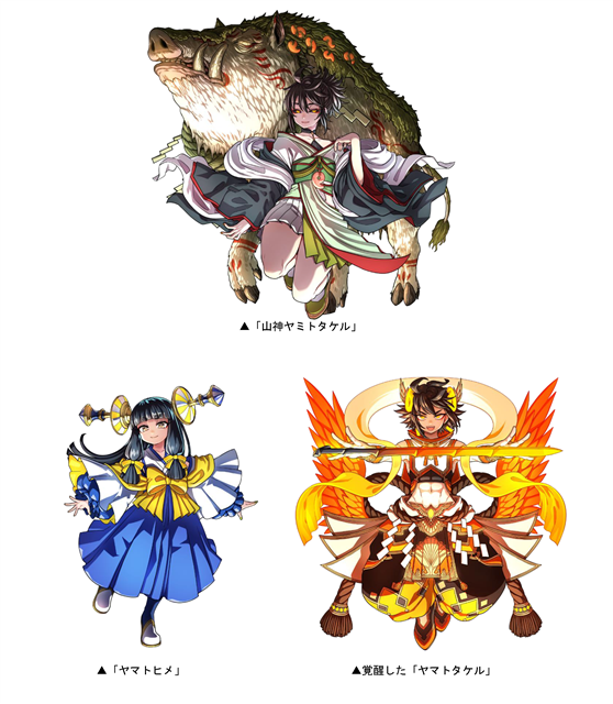 本ダンジョンには、「山神ヤミトタケル」「ヤマトヒメ」、覚醒した「ヤマトタケル」が出現し、クリアした回数に応じて竜石を手に入れることができる。