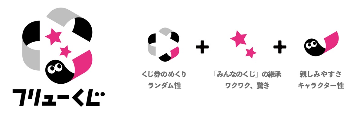 新しいロゴデザインは、くじ券をめくる瞬間の躍動感とくじのランダム性を表現した円形のモチーフをベースに、『みんなのくじ』から継承された星を中央に配置し、くじを引く時の“ワクワク感”を表現。キャラクター性や幅広い世代から好まれるピンク色をアクセントとして取り入れることで、親しみやすさを持ってほしいという想いを込めている。
