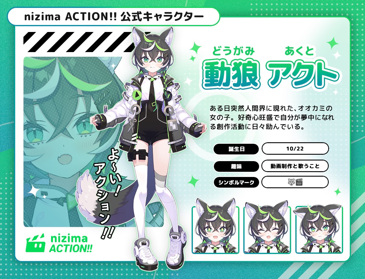 オープンα版へのアップデートに合わせて、nizima ACTION!!の公式キャラクター「動狼アクト」がお披露目となった。これから動狼アクトを通して、ユーザーにnizima ACTION!!の魅力や最新情報をよりダイレクトに届けられるようになる。また、情報発信のみにとどまらず、nizima ACTION!!を通して色々なことにチャレンジしていく予定だ。
