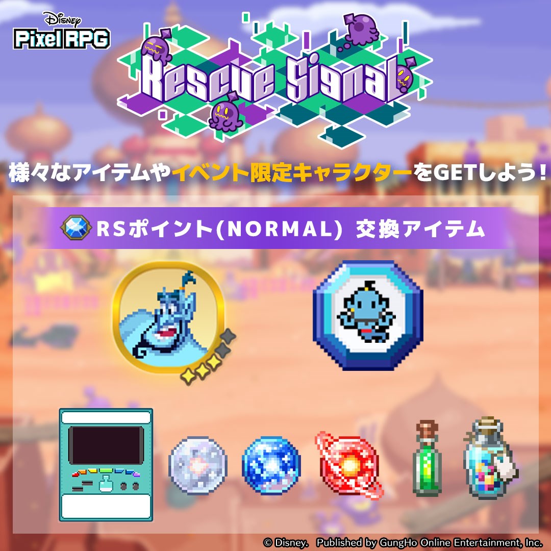 なお、現在、ゲーム内ではイベントキャラクター「正義の魔人 ジーニー」が目玉報酬の「Rescue Signal:アクションアドベンチャー アラジン」を開催している。イベント開催にあわせた応援ログインボーナスや、2つの期間限定ガチャ「正義の青年 アラジン」「正義の王女 ジャスミン」も登場している。