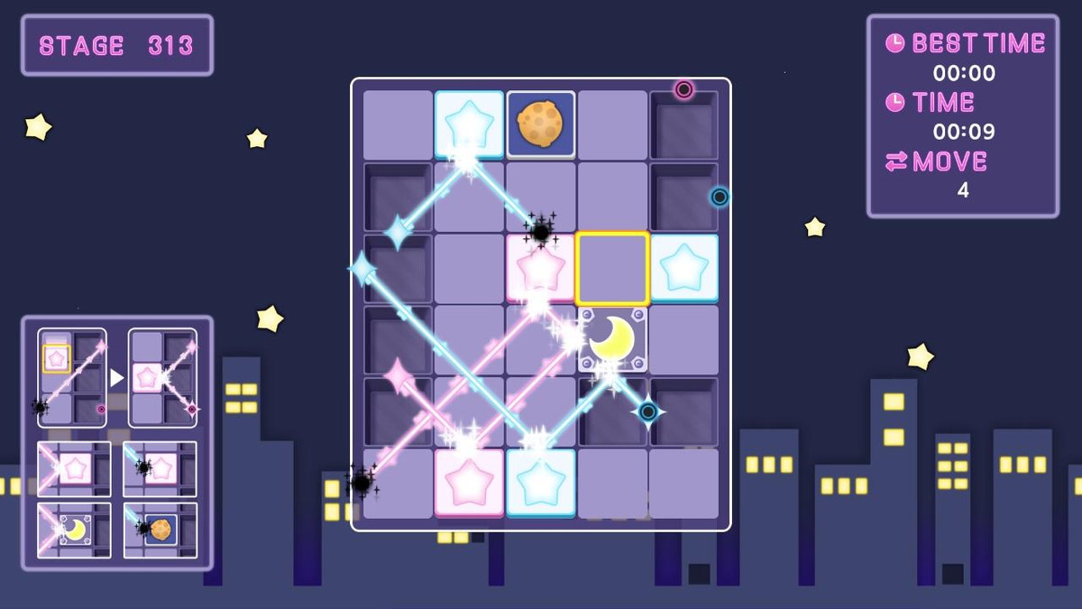 本作は、ビームを反射させてゴールに当てるパズルゲーム。反射できるのはビームと同じ色のブロック。違う色のブロックでは反射できない。また、ビームと同じ色であれば、どのゴールに当ててもOKすべてのビームをゴールに当てることができたらクリアになる。パズルは4つの難易度で全1000問に加え、さらに高難度のエクストラステージも用意している。