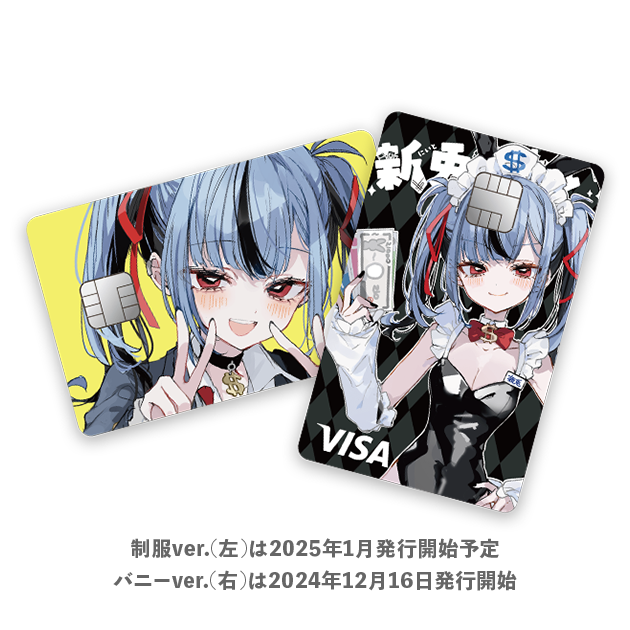 バニーver.と制服verの新兎わいさんがデザインされたオリジナルクレジットカードが登場。コレクション用として楽しめる保存用カードが付属しており、税込5,000円で発行可能。(※制服ver.は2025年1月発行開始予定)