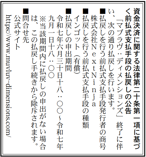 6月30日付の「官報」の資金決済法に基づく前払式支払手段の払戻しの公告が掲載されていた。
