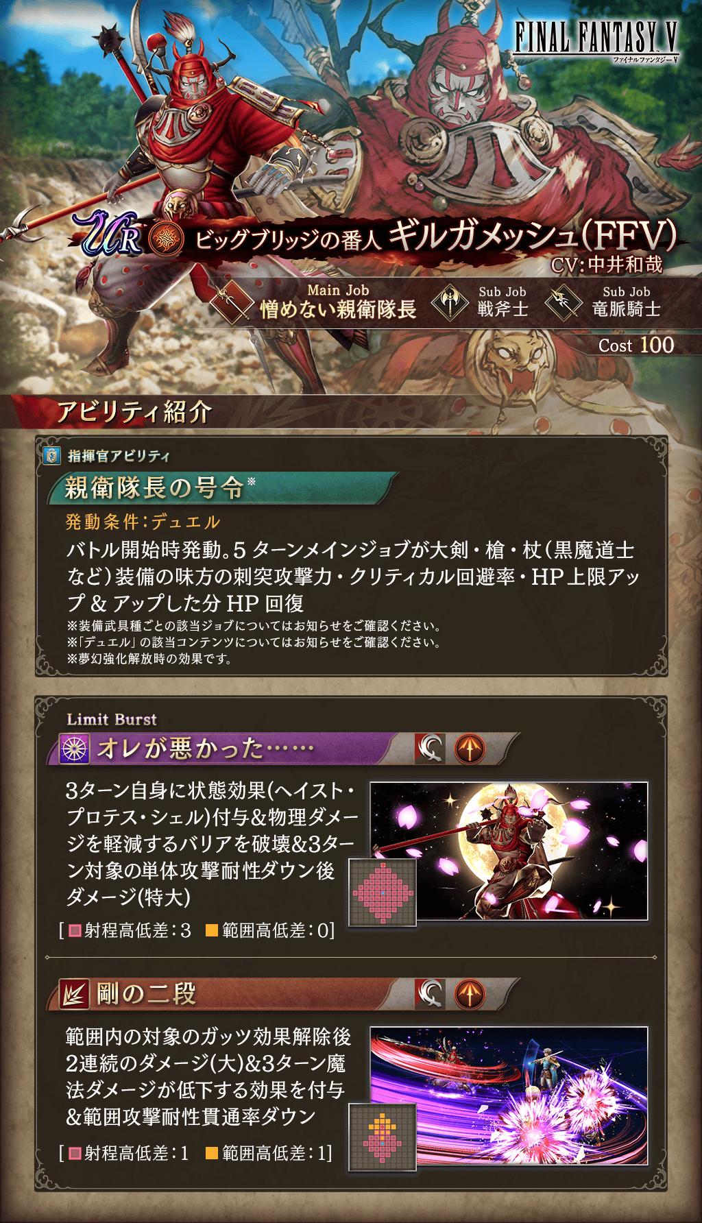 『FFⅤ』コラボ復刻!新 UR ユニット「ギルガメッシュ(FFⅤ)」&新ビジョンカード「置いてけぼりはなしだぜー!」登場!ピックアップ召喚を開催中!