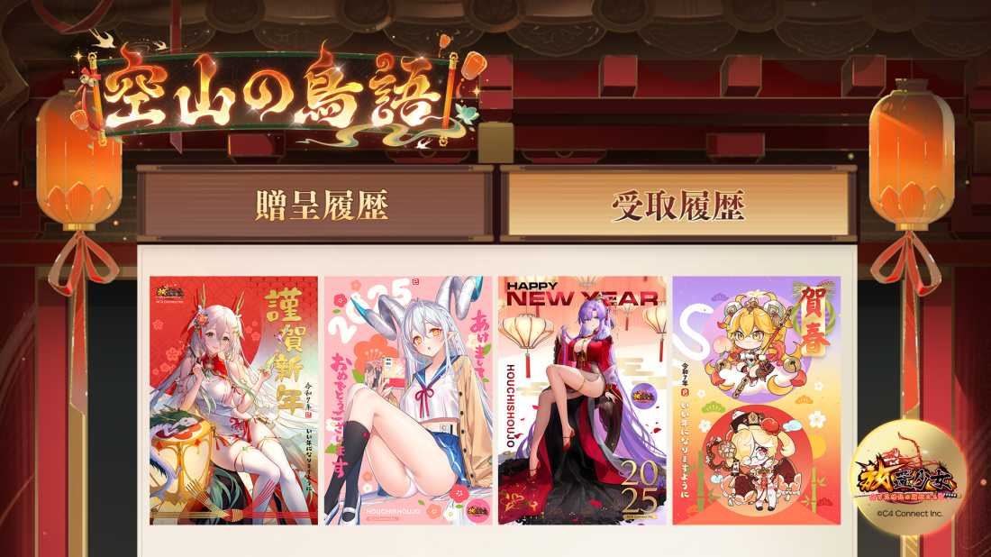 開催期間中、毎日フレンド、同盟メンバー、副将に年賀状を送れる。返信をお楽しみに!