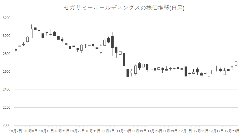 12月24日の東京株式市場では、セガサミーホールディングス<6460>が続伸。東和ピクチャーズが前日、映画『ソニック × シャドウ TOKYO MISSION』について、12月20日~22日の週末3日間の北米週末興行収入6200万ドル=96億7000万円で首位だったと発表した。