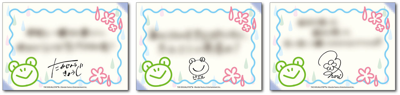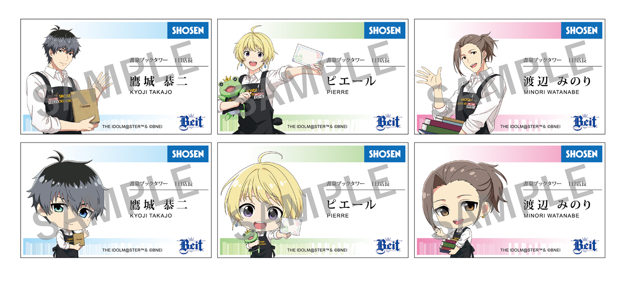 また、本企画のオリジナルグッズを2000円(税込)以上購入ごとに、「書泉1日店長名刺」(全6種)と「THE IDOLM@STER PICTURE COLLECTION アイドルマスター SideMパック」をそれぞれ1枚ずつプレゼントする。
