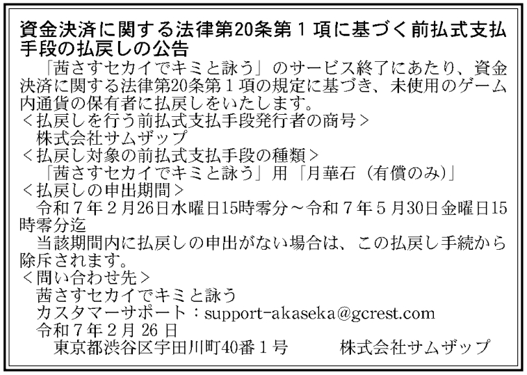 2月26日付の「官報」に資金決済法に基づく前払式支払手段の払戻しの公告が掲載されていた。