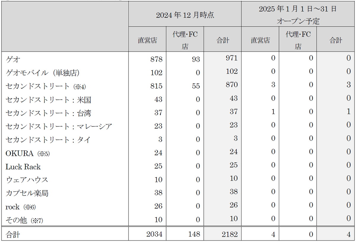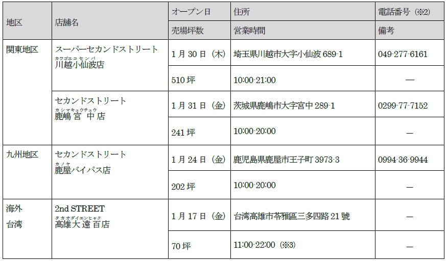 ※4)スーパーセカンドストリート、セカンドアウトドア、ジャンブルストア、Doki-Doki、Oki-Doki含む