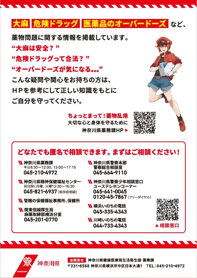 神奈川県は、「再生・細胞医療の産業化」や「薬物乱用防止」を推進している中で、こうした取組をより一層わかりやすく伝えるために、アニメ『はたらく細胞』とコラボした普及啓発を実施することを発表した。