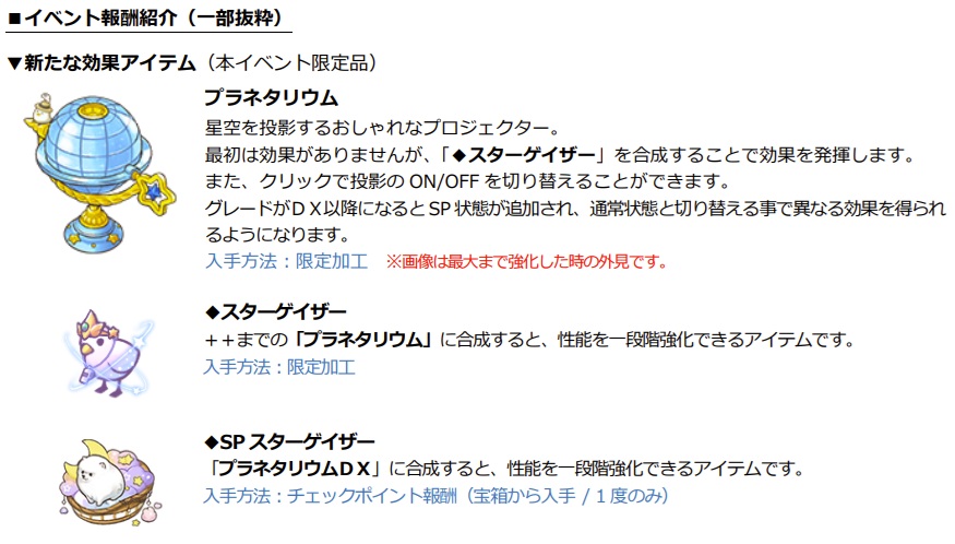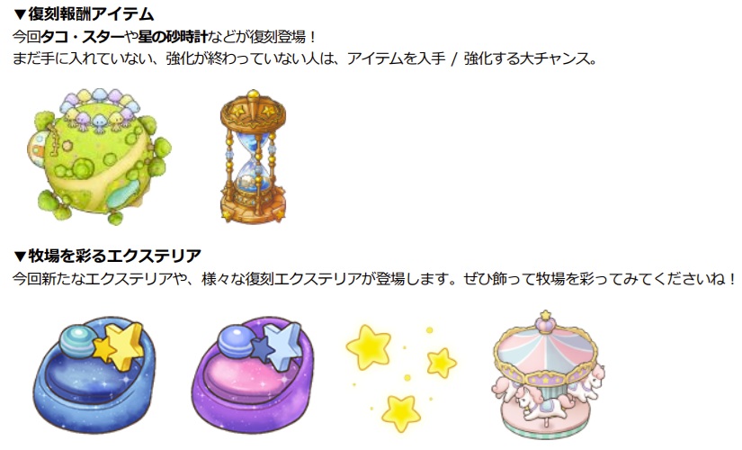 多数の復刻報酬アイテム、復刻エクステリア、多数の便利アイテムも報酬で手に入る。