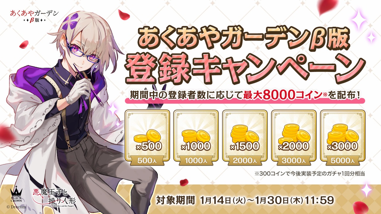 β版登録者数に応じてコミュニティ内コインを配布する「あくあやガーデンβ版登録キャンペーン」を実施中。