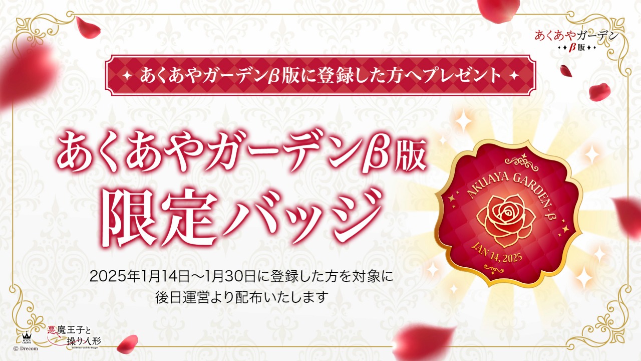 4.コミュニティ登録者全員にデジタルアイテム「あくあやガーデンβ版限定バッジ」をプレゼント
