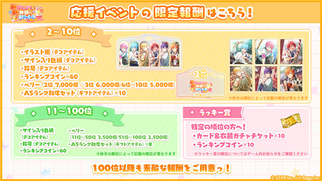 応援イベントのランキングの順位に応じて特別な報酬を入手することができる。