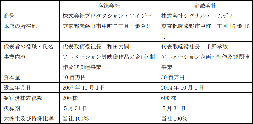 プロダクション・アイジーは、アニメーション等映像作品の企画・制作及び関連事業を行っており、シグナル・エムディはアニメーション企画・制作及び関連事業を展開している。