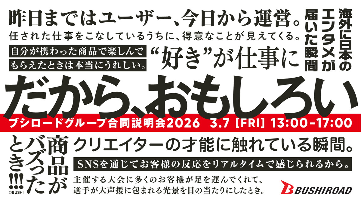 ・ブシロード、2026年度新卒向け合同説明会とESお渡し会を3月7日に開催