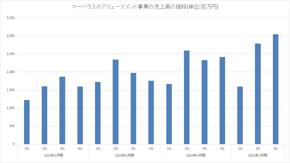 マーベラス<7844>は、第3四半期(24年10~12月)のアミューズメント事業の売上高について前年同期比30.8%増の30億4800万円だった。四半期ベースではセグメント設立以来の最高水準となった。『ポケモンガオーレ』の海外展開やプライズマシン『TRY CATCH』の発売などが貢献し、売上高は大きく伸びた。