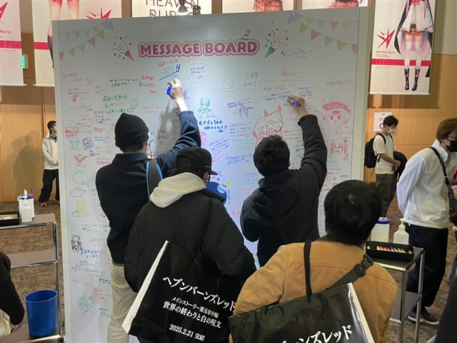 ▲メッセージボードに3周年のお祝いコメントを書き込む来場者の姿も数多く見られた。