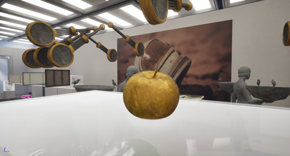 リンゴは転がりやジャンプ、ブレーキで操作することができる。つるつると滑るリンゴを思った通りに動かすために、細心の注意をもった操作が必要。繊細な操作を通して、思うようにいかない新しいリンゴアクションを体験することができる。