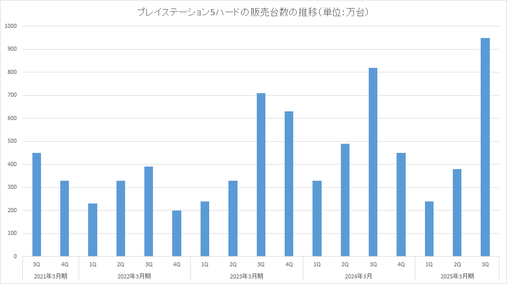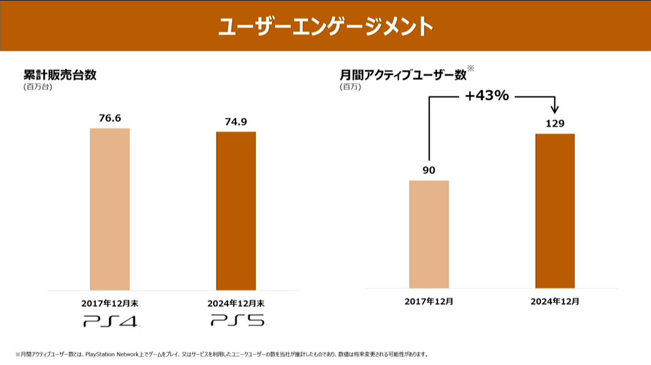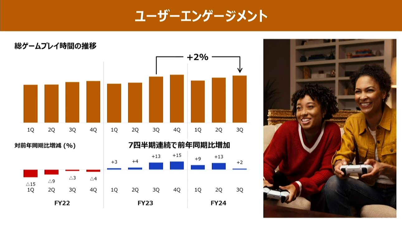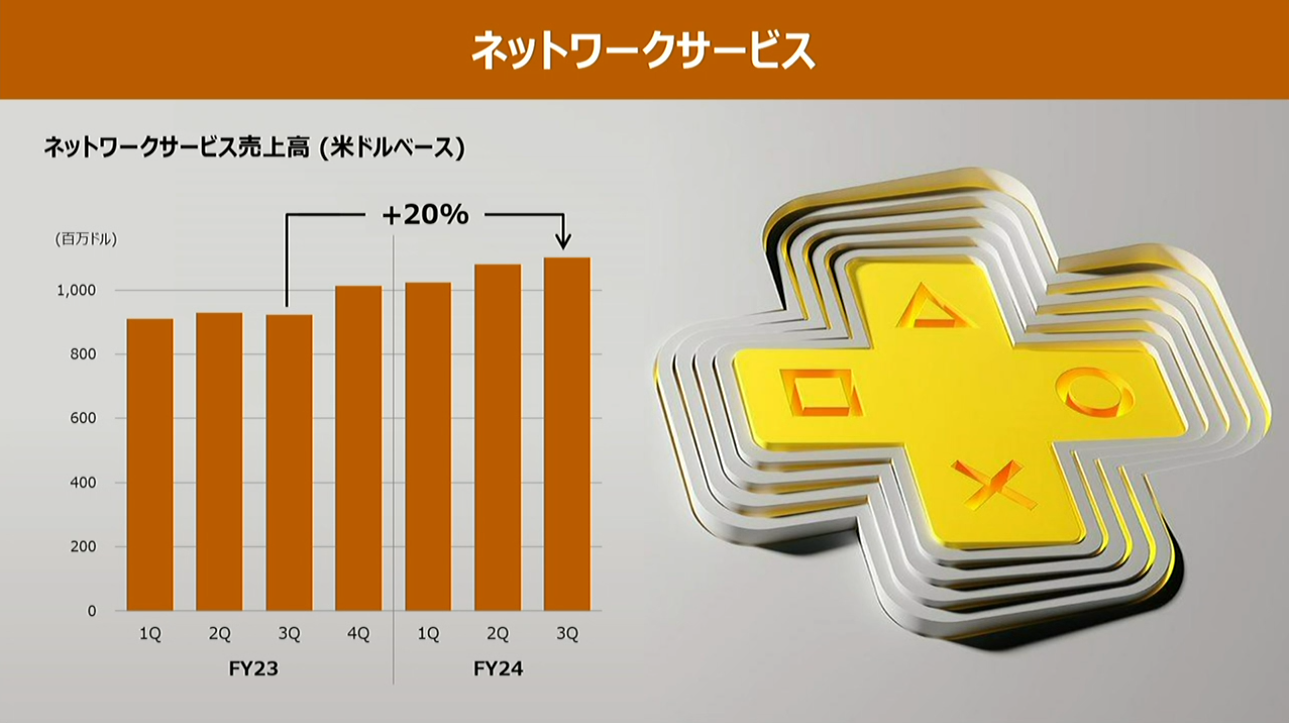 同社では、前年同期に発売されて大ヒットした『Marvel's Spider-Man 2』の反動減があったものの、ネットワークサービス(PS Network)の収益と、自社制作以外のゲームソフト販売が伸びたため、としている。