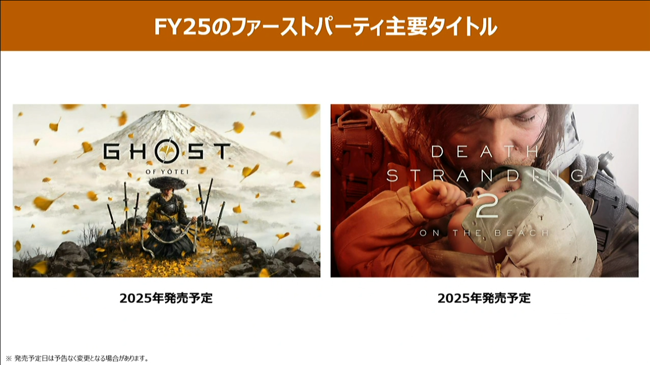なお、来期である2026年3月期の見通しについてもコメントがあった。代表執行役 社長 COO 兼 CFO 十時 裕樹氏は、来期においてはサードパーティだけでなく、ファーストパーディでも強力なタイトルの発売が予定されており、「よりよいモメンタムができるのではないか」。説明会では『Ghost of Yōtei』と『Death Stranding 2』を紹介した。