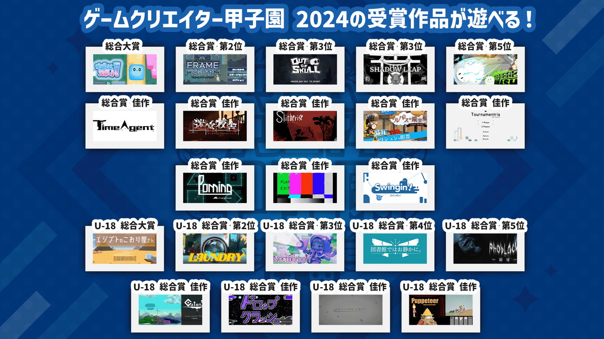 ゲームクリエイターズギルドは、2025年2月15日・16日に産業貿易センターで開催されるインディーゲーム展示会「東京ゲームダンジョン7」に出展する。『ゲームクリエイター甲子園 2024』の1001作品の応募作の中から総合大賞を受賞した「すぽっとスポット!」や、U-18総合大賞受賞作品などファイナリストである22作品を展示する。当日はゲームクリエイターズギルドオリジナルグッズの配布も予定している。