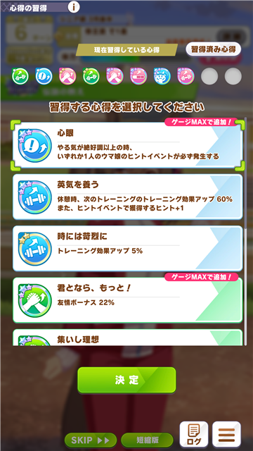 ■“心得”を習得してトレーニング効果をアップ!デッキ構築風の新たな育成シナリオ