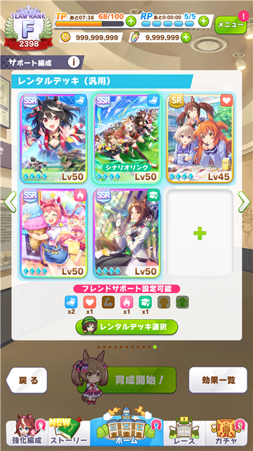 また、本シナリオでは実質的な適性距離による育成縛りがないため、短距離から長距離、芝・ダート問わず、全ウマ娘の育成に適しているのが嬉しいところだ。チャンピオンズミーティングやリーグオブヒーローズが捗る捗る。