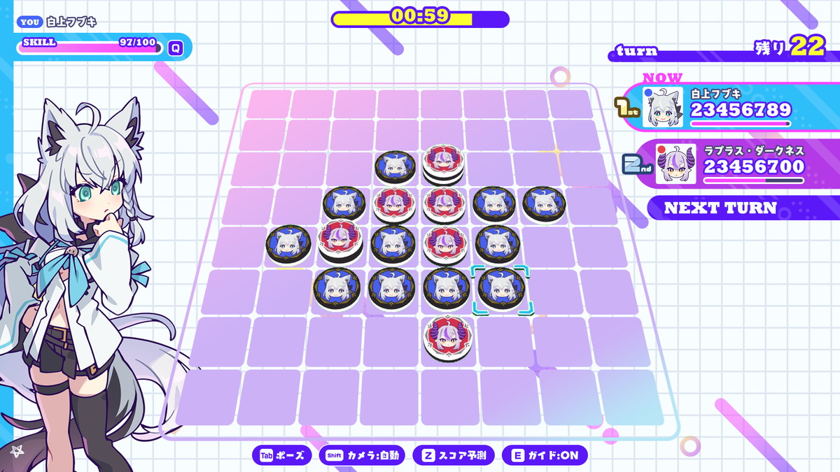「#ホロリバーシ」は、おなじみのリバーシにホロライブタレントのスキルなど独自のシステムが多数加わった新感覚のリバーシゲーム。