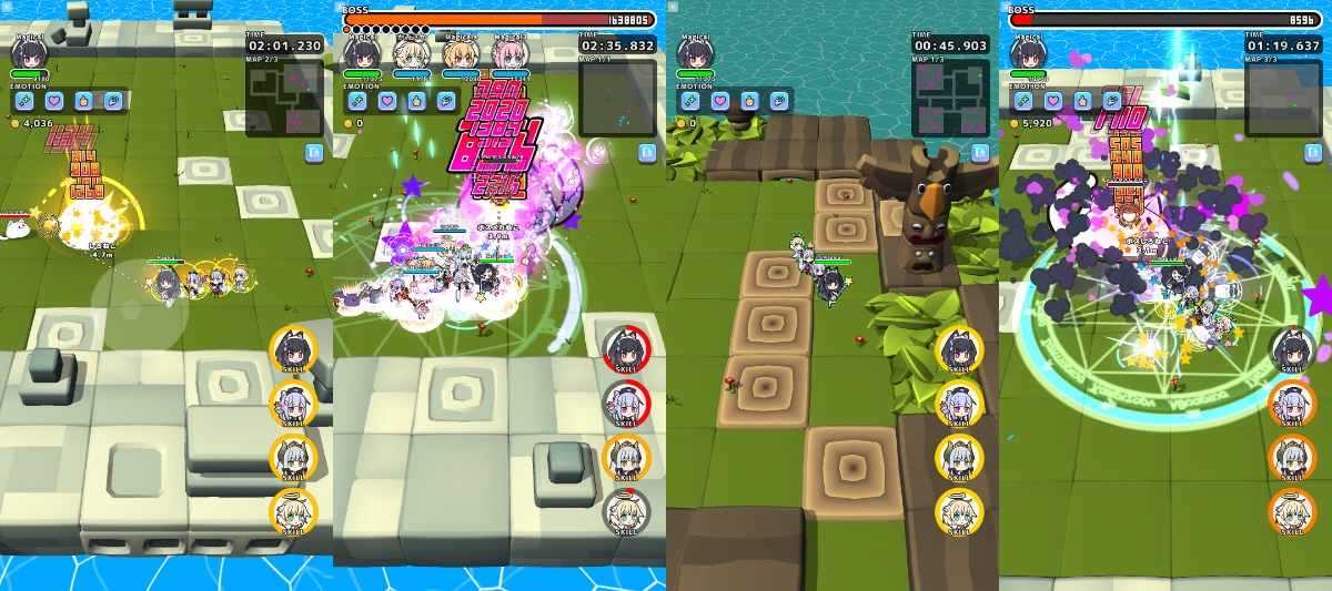 時にはガチャチケットやスターストーン等の貴重なアイテムも。オンラインでみんなで協力プレイをすると、獲得効率が大幅アップ。稼いだお金で魔法少女や装備アイテムを強化できる。