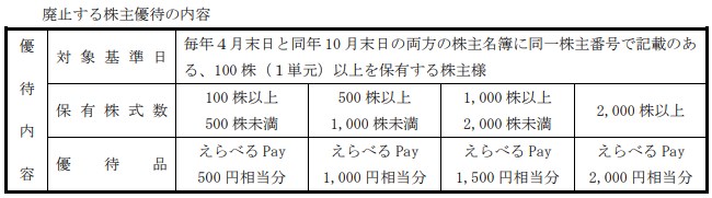 ファイナンス クシム、2025年10月期より株主優待制度を廃止 株主に対する公平な利益還元などを勘案 クシム クシム 株式 2025.02.25 17:43 クシム<2345>は、2月25日、2025年10月期より株主優待制度を廃止することを発表した。 同社は、株主の支援に感謝するとともに、同社株式への魅力を高め、中長期的により多くの方に同社株式を保有してもらうことを目的として、株主優待制度を実施してきた。しかし、株主に対する公平な利益還元や企業価値向上のための成長投資など、株主優待に係る費用の見直しについて、慎重に検討を重ねた結果、株主優待制度を廃止することを決定した。