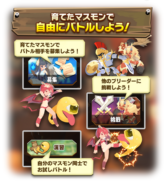※自分のマスモン2体を戦わせる「演習」機能も実装