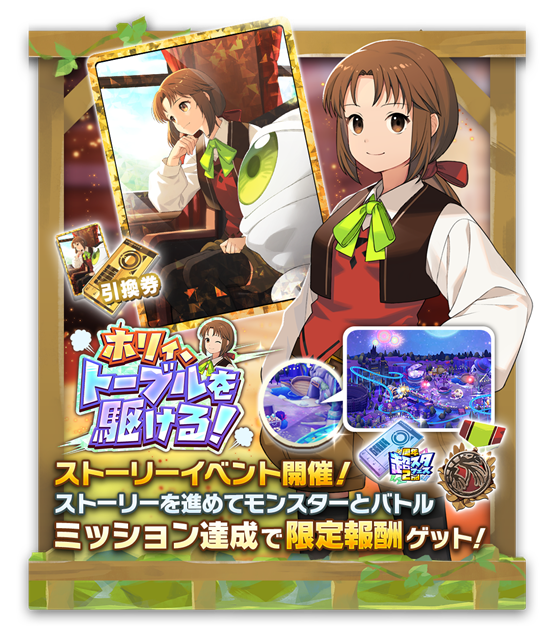 ストーリーを読み進めながら間に挟まるミッションをクリアすることで、「★3円盤石」や「周年超スタ2ndチケット」が手に入るストーリーイベント「ホリィ、トーブルを駆ける!」を開催する。また、プロローグを見ることで「SRホリィ引換券」がもらえる。