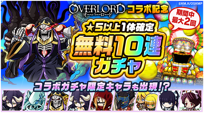 期間中、コラボレーションガチャに新バージョンの「アインズ・ウール・ゴウン」、「アルベド」、「コキュートス」がボイス付きで登場。それぞれ最大レアリティとなる★7で出現となる。