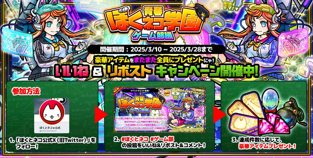 2. @IGNM_BOKUNEKO「#ぼくとネコ #ゲーム部」が付いた投稿をいいね&リポスト!