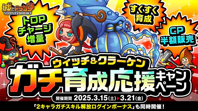 ウィッチとクラーケンを対象とした「【ガチ】育成応援キャンペーン」を開催