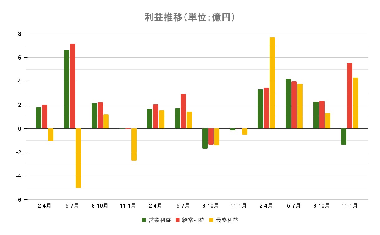 なお、同子会社が暗号資産評価益5億4700万円を営業外収益として計上しており、経常利益と最終利益は大幅な黒字転換となっている。
